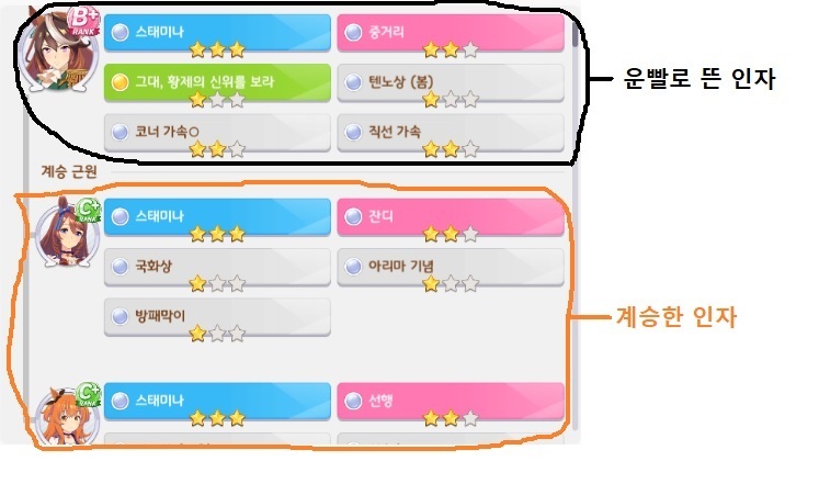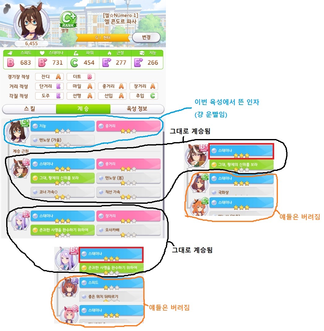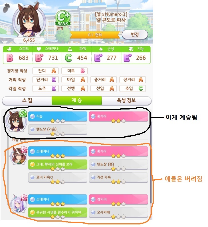 그나마 영향을 미친다면 3성 컷인 600을 넘길때 계승으로 더 쉽게 넘기는 정도뿐이죠. -