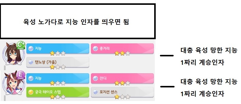 스태미나 3 3 이라는 엄청난 인자를 물려받았지만 후대에 주는건 지능1성 이된다.