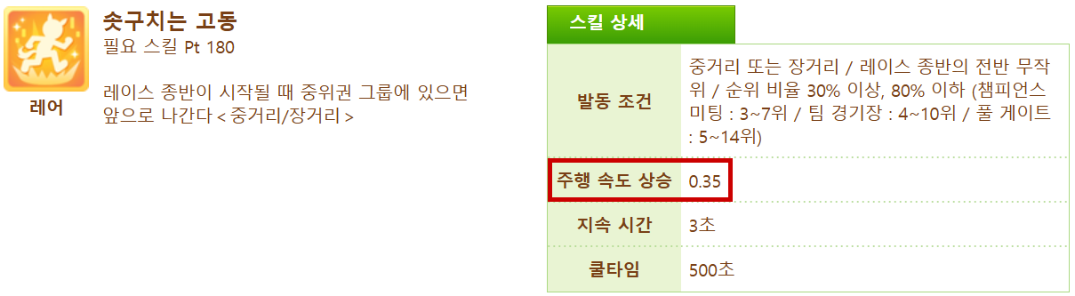 중/장거리에서도 발동은 하나 이미 가속구간이 지나서 효과가 없거나 미미한 경우가 있습니다.