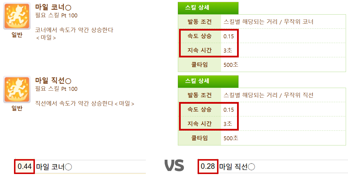 반면 직선스킬은 그냥 중반기에서 그치는 수준이기 때문에 마신표 평균값은 낮은 편에 그치지요.