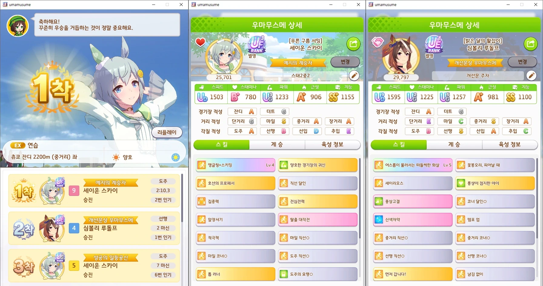 시나리오별 육성 공략은 [우마무스메 프리티 더비 갤러리] 공지 참고 바랍니다.