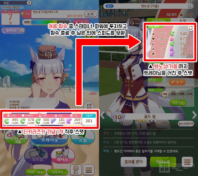 타카라즈카 기념까지 최소 스탯 ‘500 – 600 – 500’을 달성