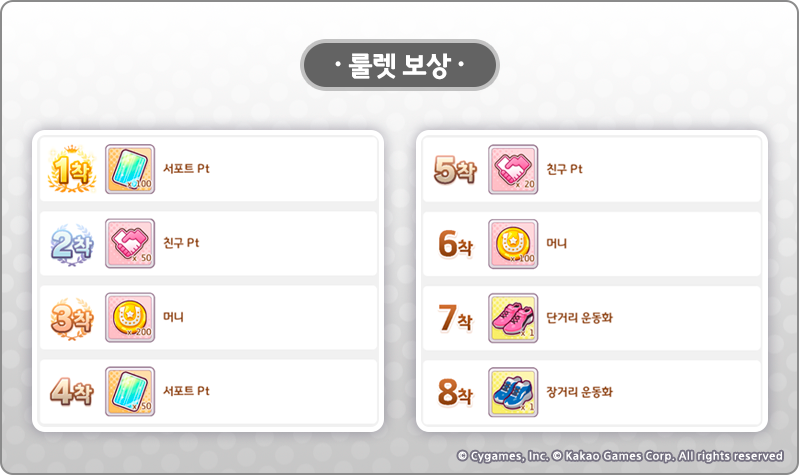 - 본 이벤트에서 획득한 룰렛 코인은 보상 수령 기간 종료 후 머니로 변환됩니다.