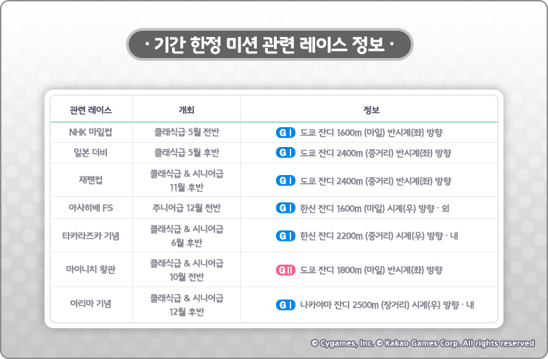 기간 한정 미션 관련 레이스 정보는 아래를 참고 부탁드립니다.