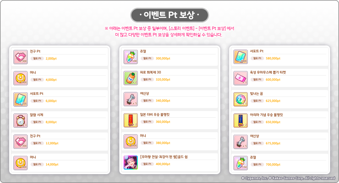 * 아래는 이벤트 Pt 보상 중 일부입니다.