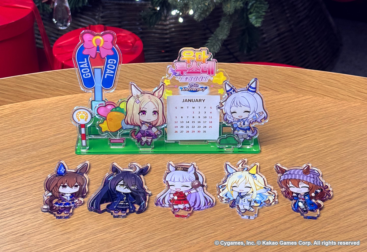 * 총 7개의 우마무스메 아크릴 캐릭터 중 원하는 것으로 캘린더를 꾸밀 수 있습니다.