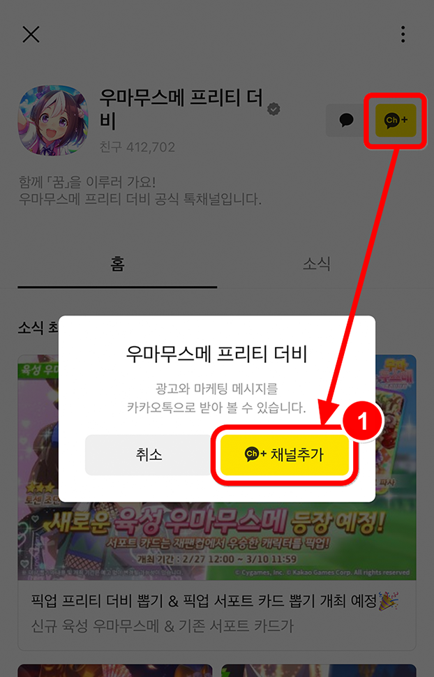 1) 카카오톡 채널에서 <우마무스메 프리티 더비> 추가