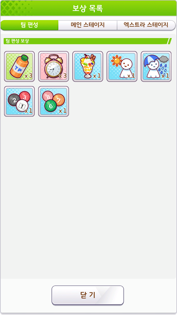 - 팀을 처음으로 편성 확정했을 때 획득할 수 있는 보상입니다.