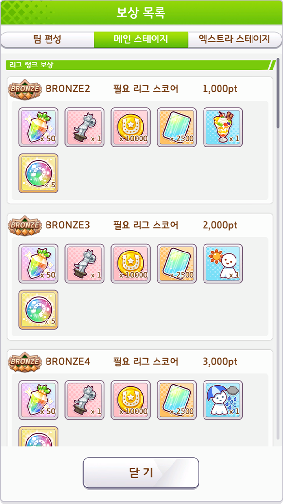 * 리그 스코어에 따라 메인 스테이지 보상을 획득할 수 있습니다.