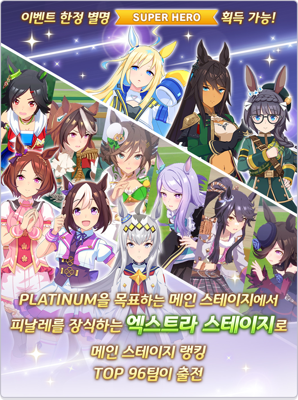 * 동일한 전당 입성 우마무스메는 이벤트 한정 별명 [SUPER HERO]를 여러 번 획득할 수 없습니다.