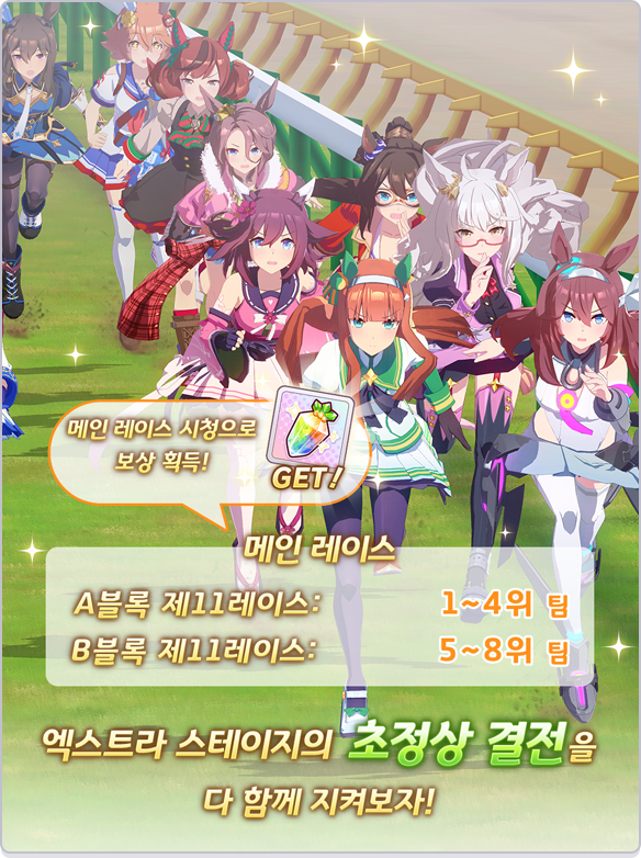- 엑스트라 스테이지의 A블록, B블록에서 각각 메인 레이스인 제11 레이스를 시청하면 획득할 수 있는 보상입니다.