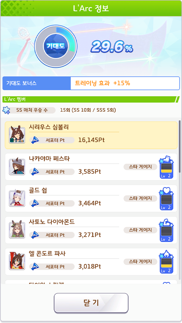 서포터 Pt를 모아 기대도 UP!