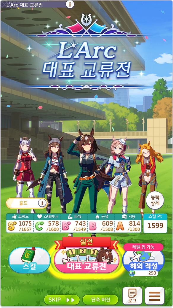 교류전은 VR 공간 속 롱샹 경기장에서 이루어지므로 해외 적성을 올려 우승을 노려 보세요.