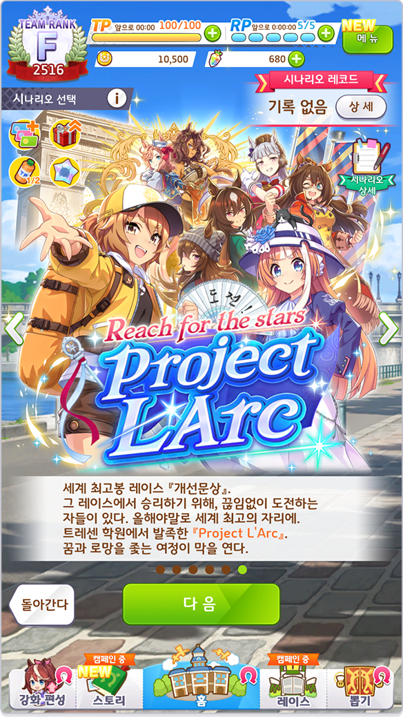 Project L'Arc에서는 육성 우마무스메 각자의 육성 목표는 없으며 개선문상을 제패하는 것이 공통 목표입니다!