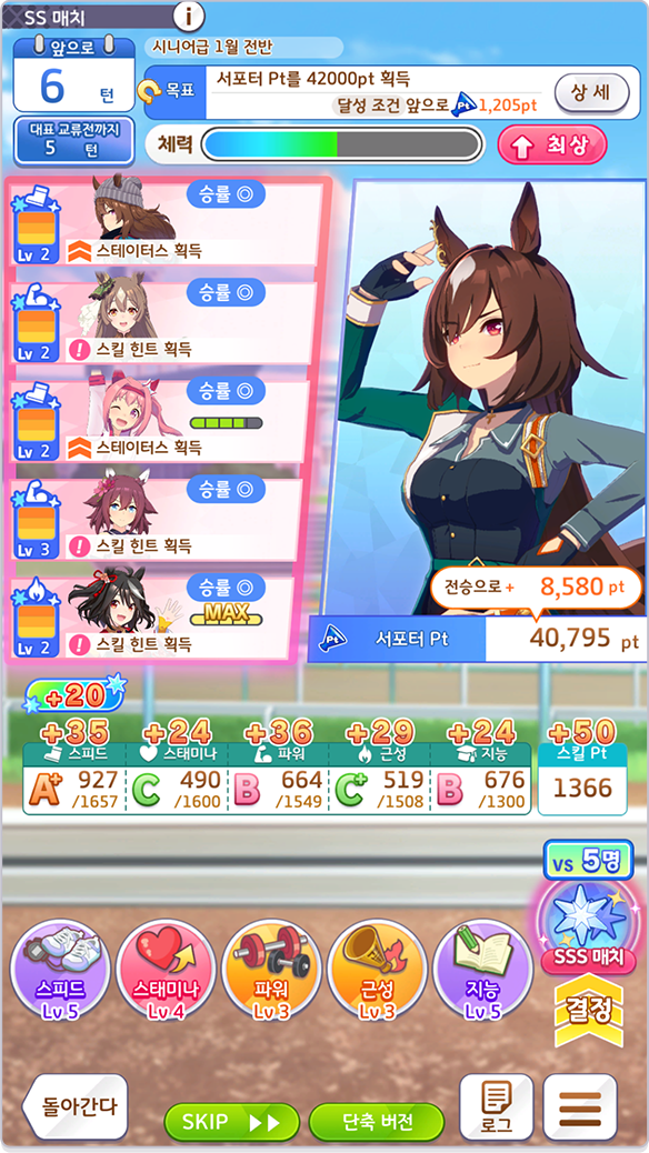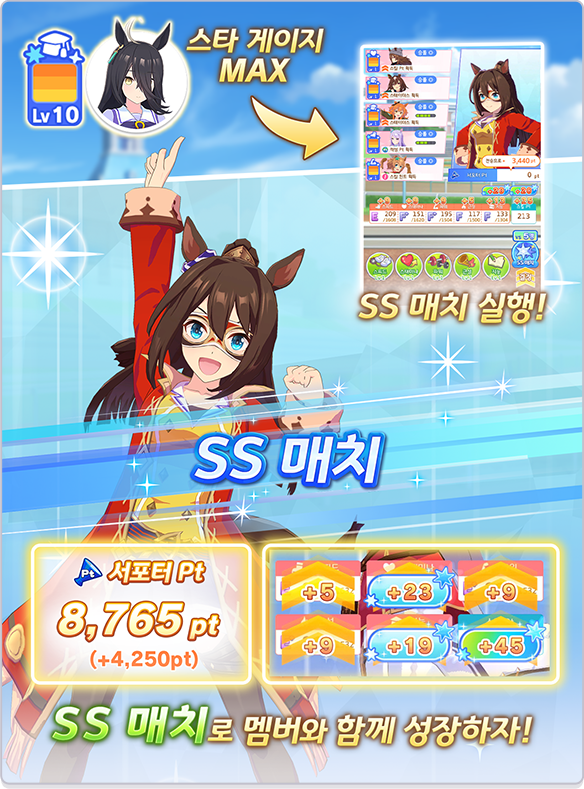 SSS 매치에서는 더 많은 서포터 Pt와 기초 능력을 획득할 수 있습니다.