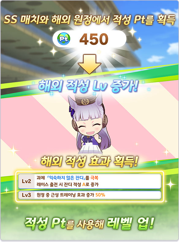 해외 원정은 우마무스메를 크게 성장시킬 기회이므로 계획을 잘 세워보세요.