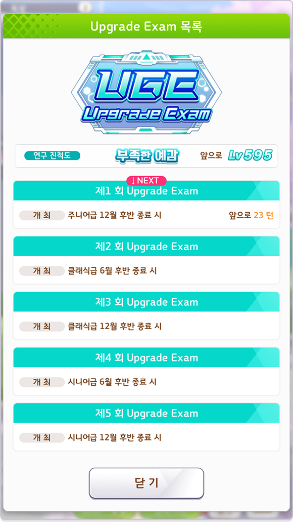 『UGE』, 정식 명칭 『Upgrade Exam』은 연구 진행 상황을 평가하는 시험입니다.