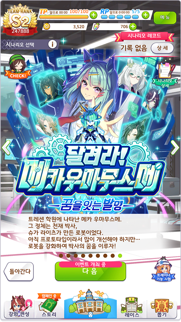 균형 있게 연구 Lv을 올려 시험에 임하고 『메카 우마무스메』의 완성을 목표로 해보세요!