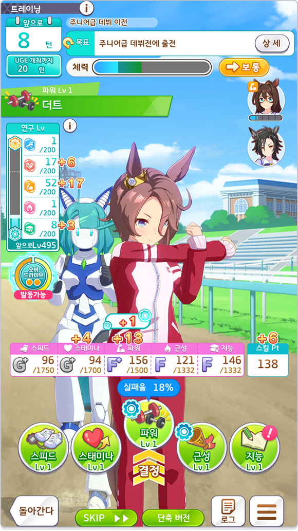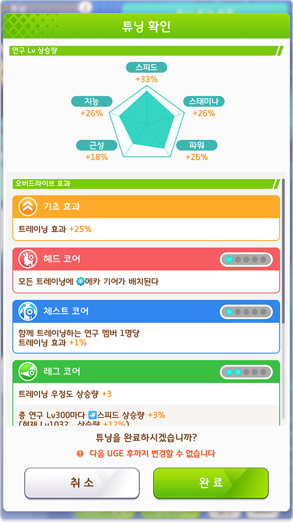 * 트레이닝 실패 시 연구 Lv이 상승하지 않습니다.