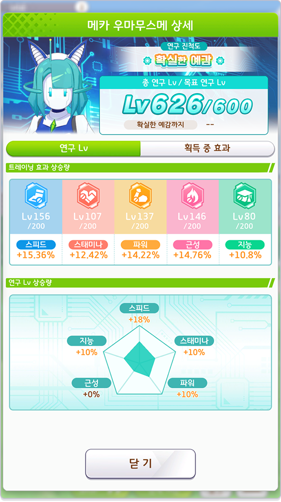 * 레이스에 출전해도 모든 연구 Lv이 조금씩 상승합니다.