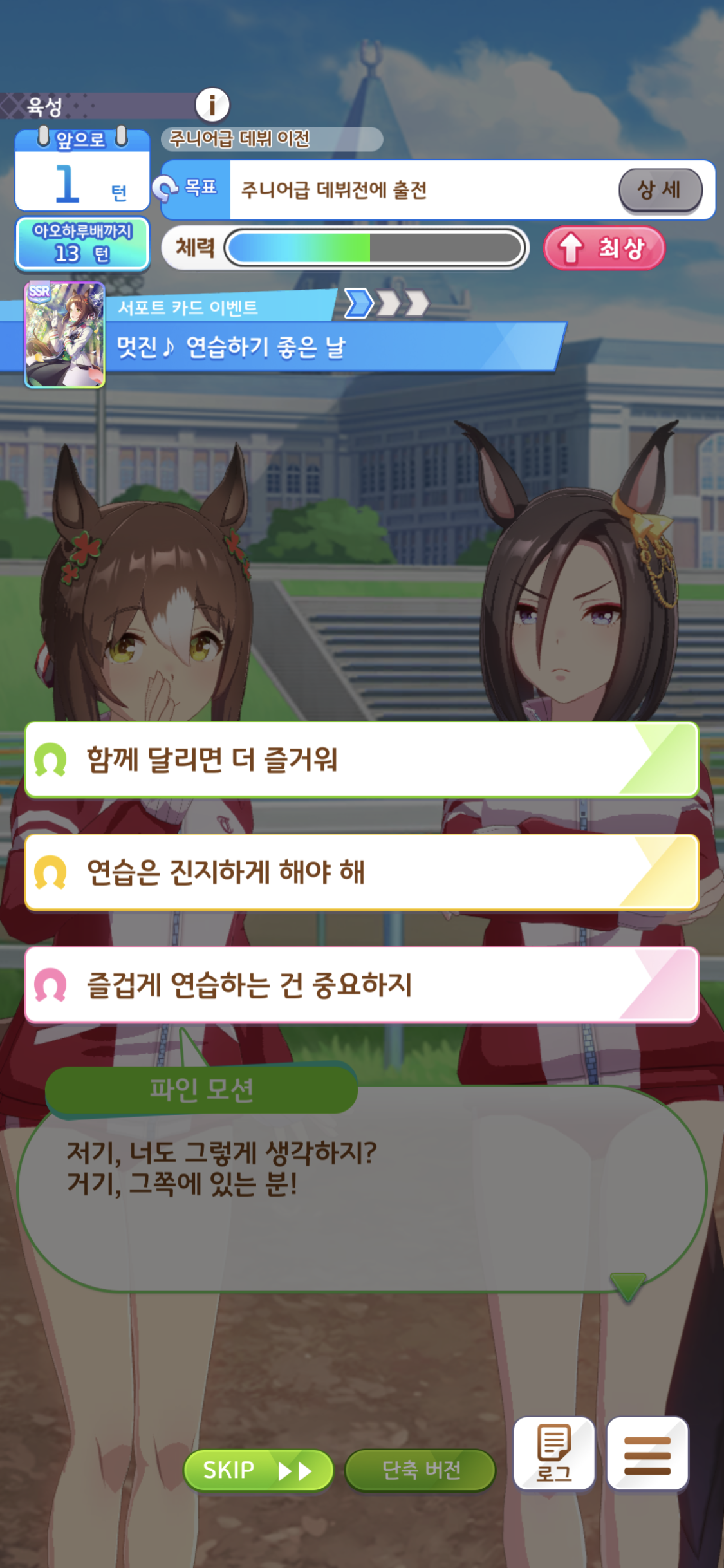 처음주는 티켓으로 뽑은 파인모션이라 그런지 더욱 정이 가는 서포트카드이고 이벤트라고 생각합니다