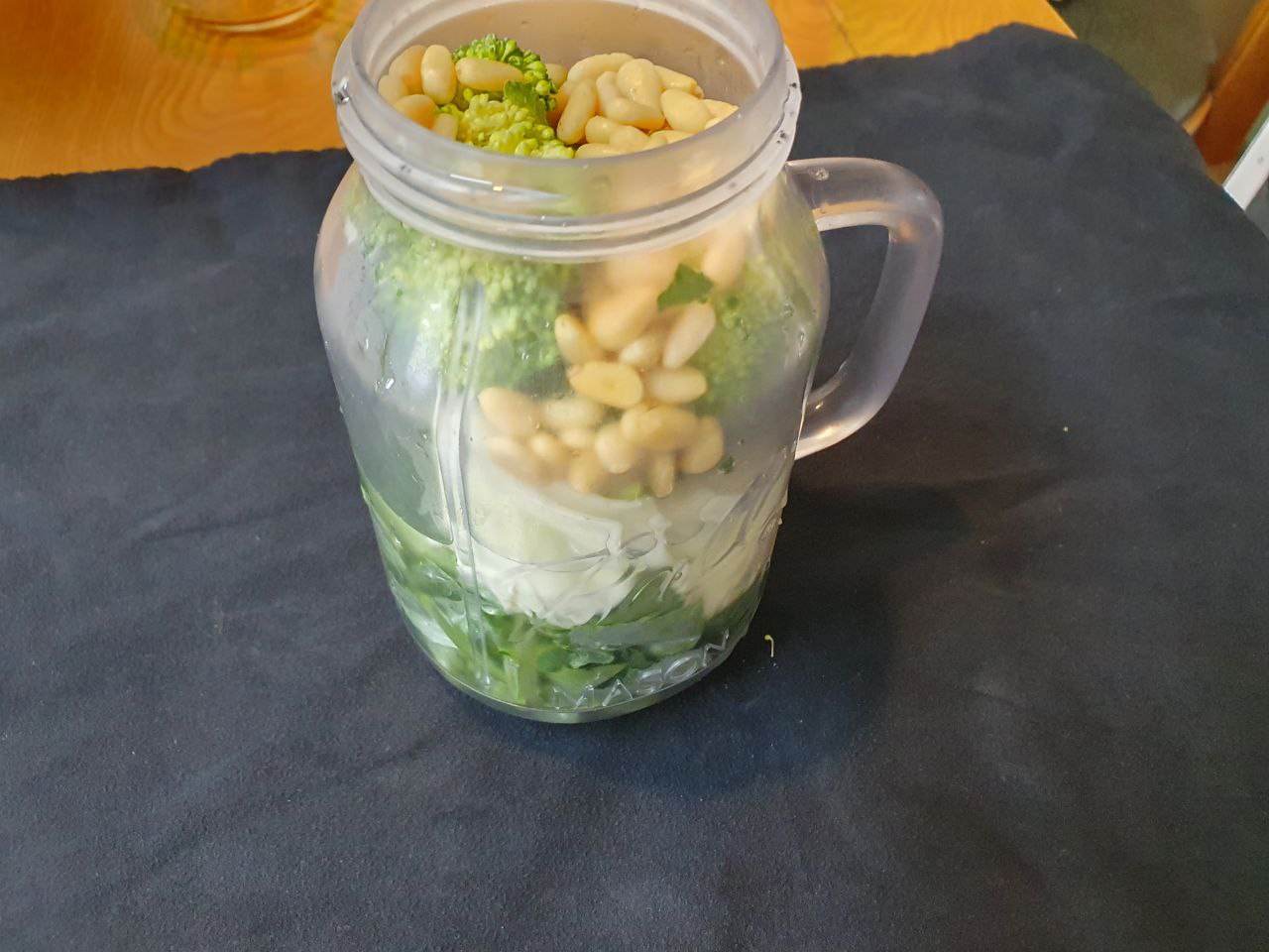 그리고 재료들을 믹서에 넣게 좋게 잘라 넣어준 뒤 약간의 물과 함께 갈아줍니당!