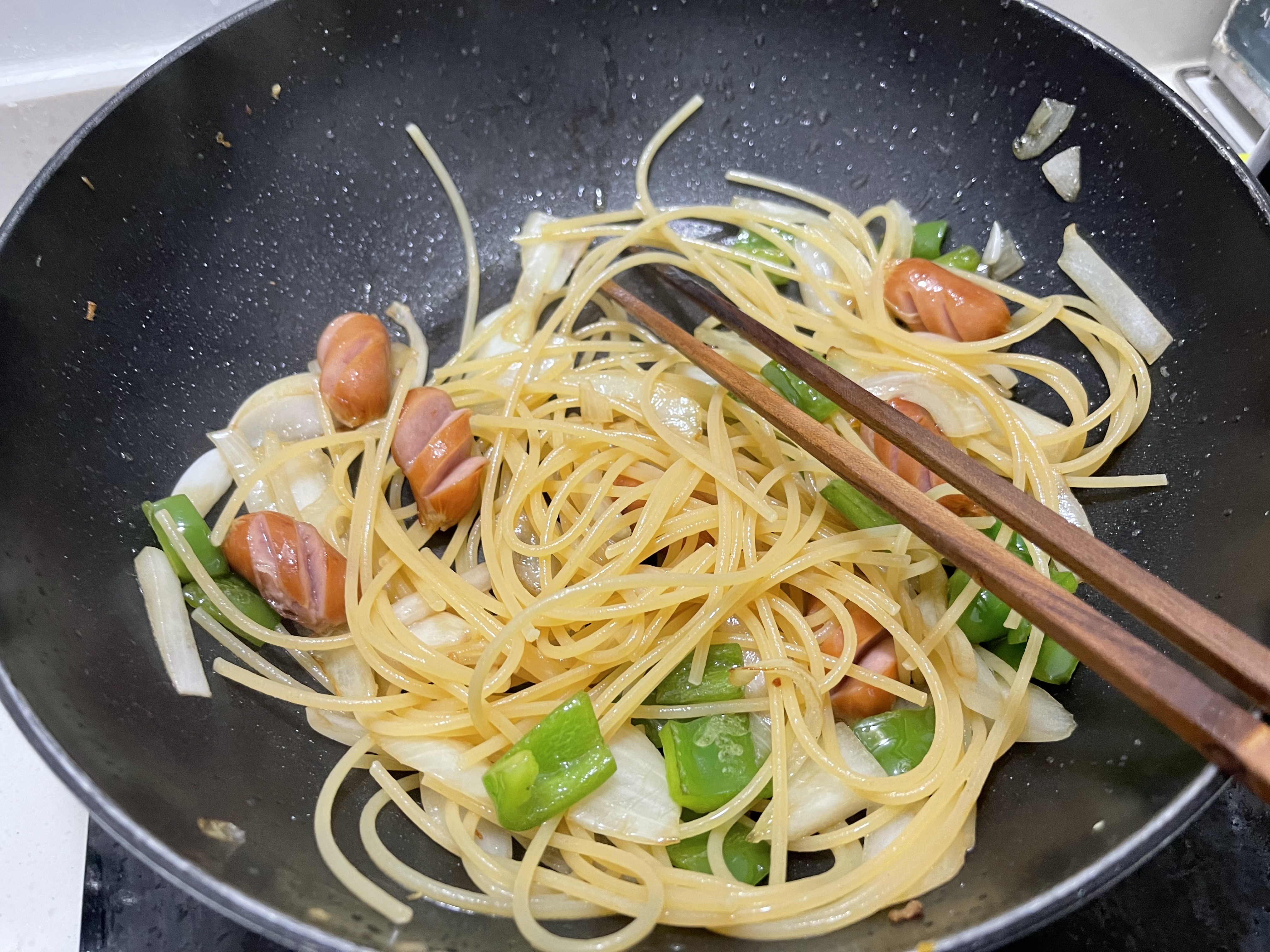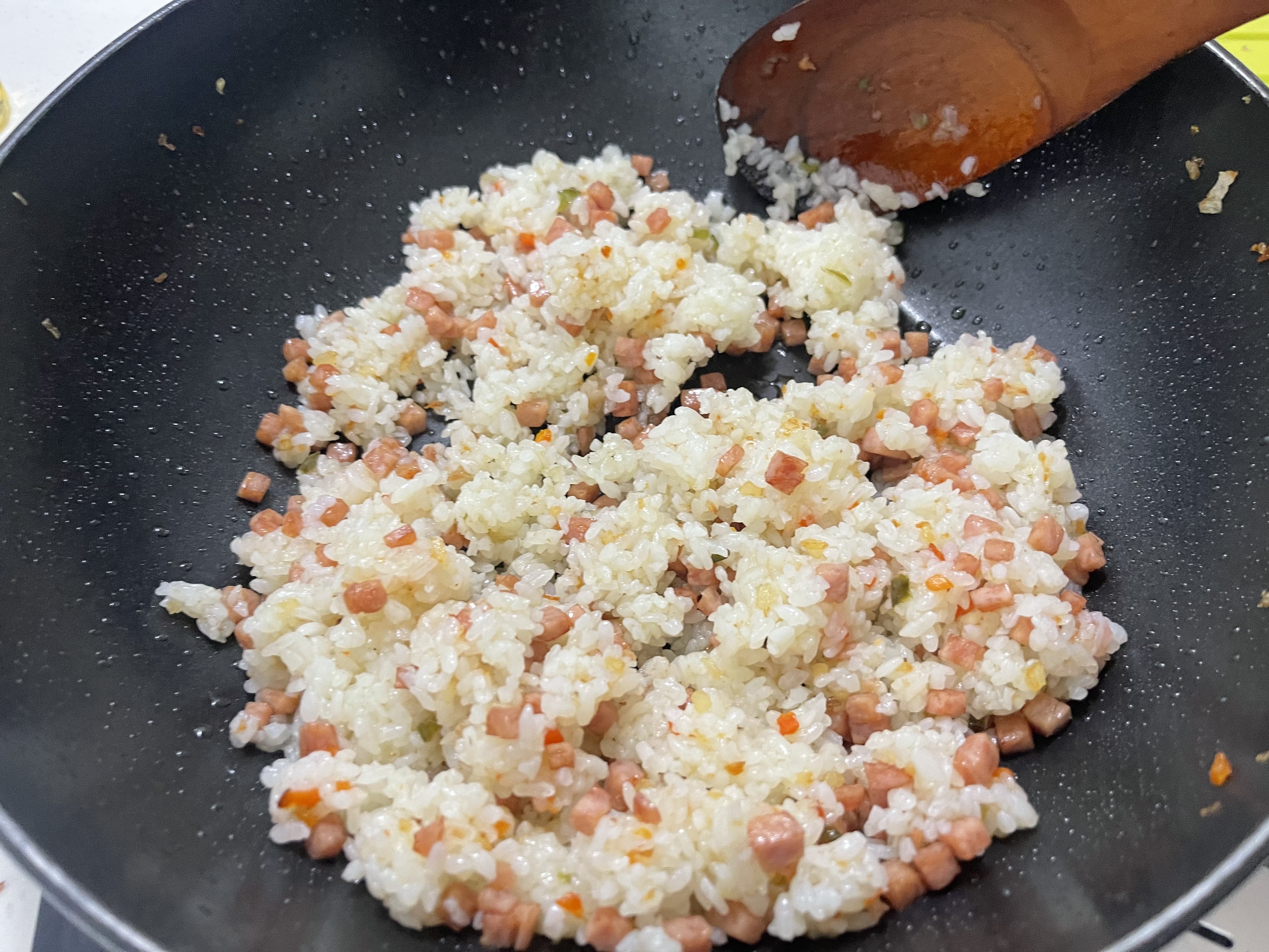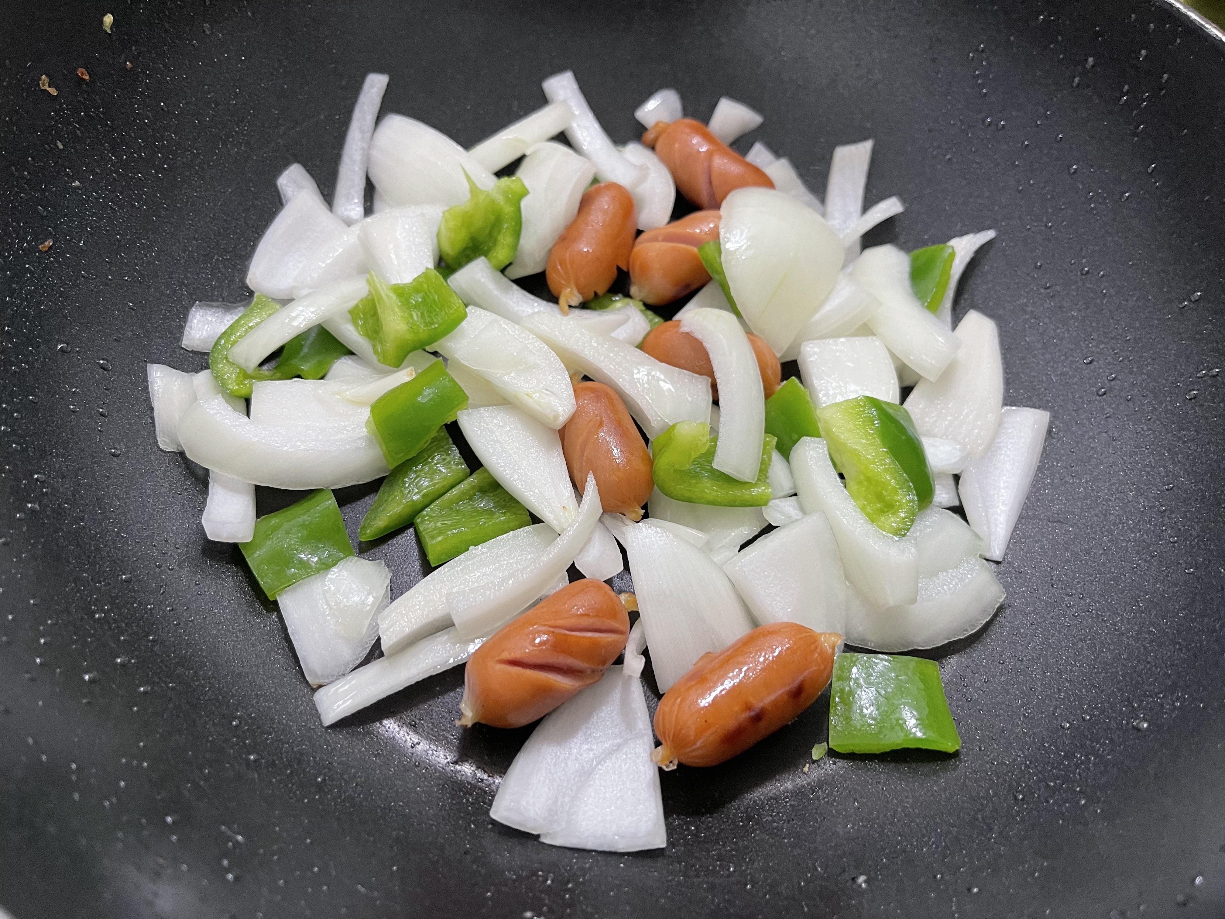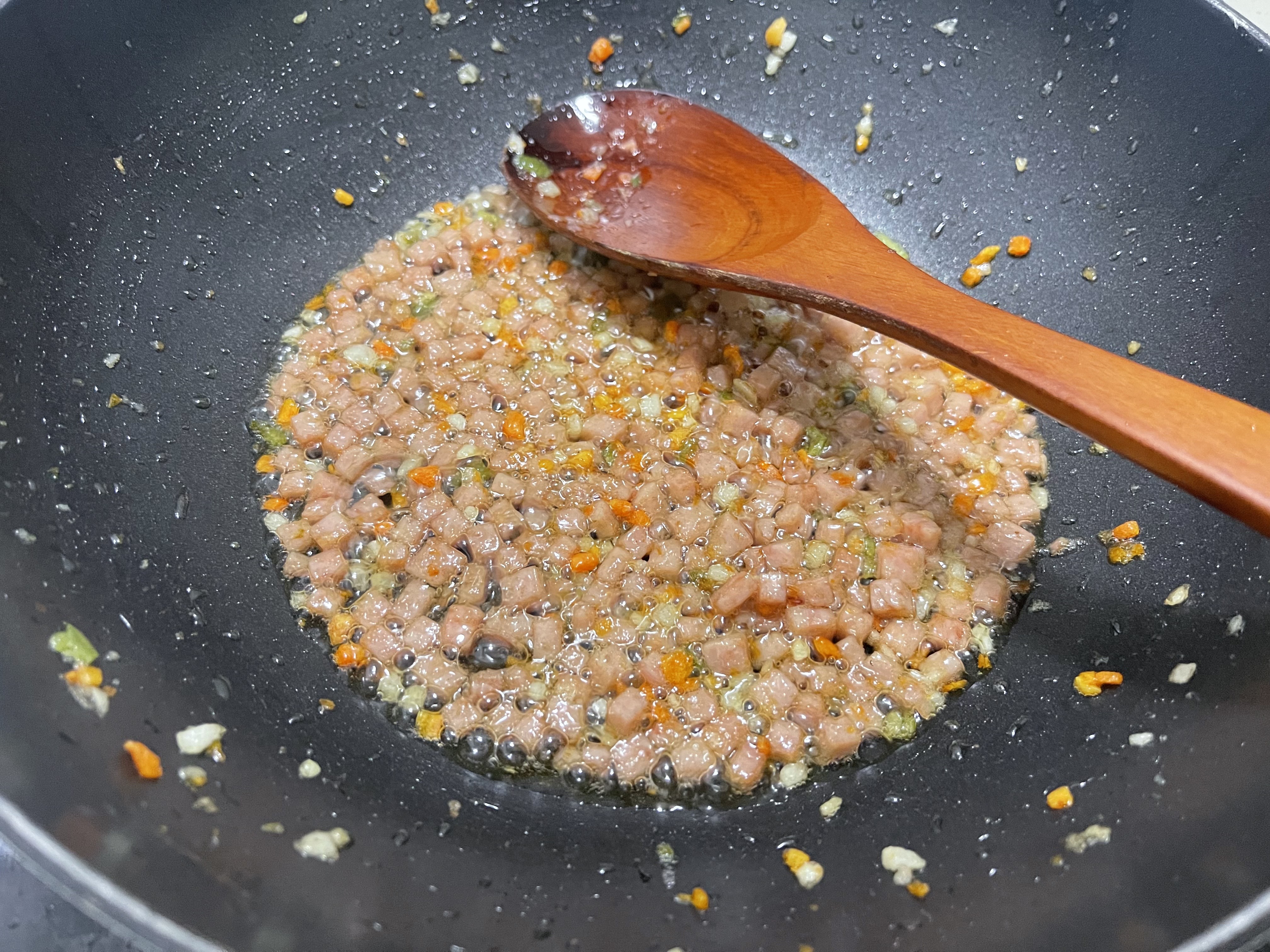 +오므라이스에 쓰일 볶음밥 토핑들을 볶습니다 (스팸+당근+피망+양파)