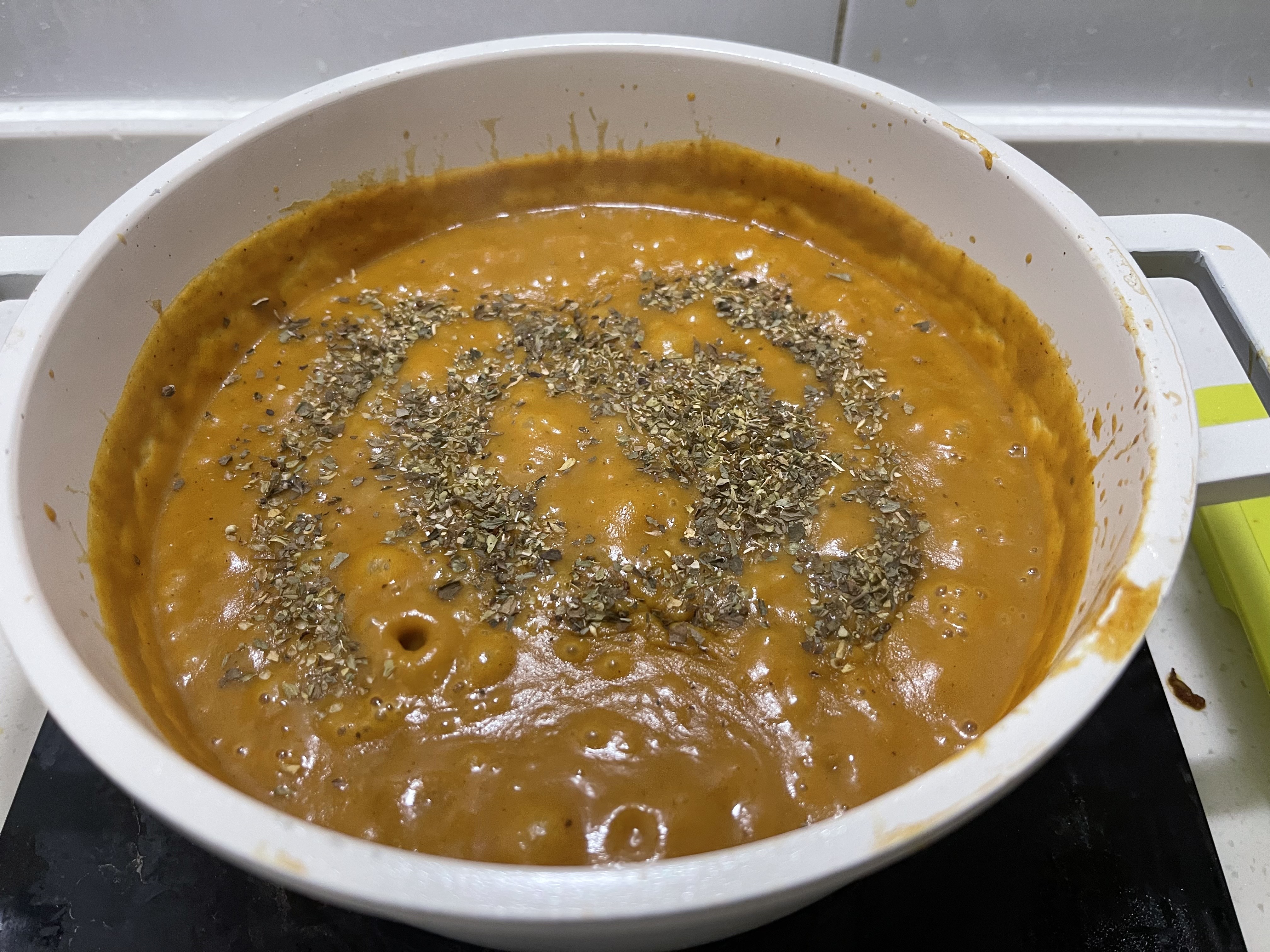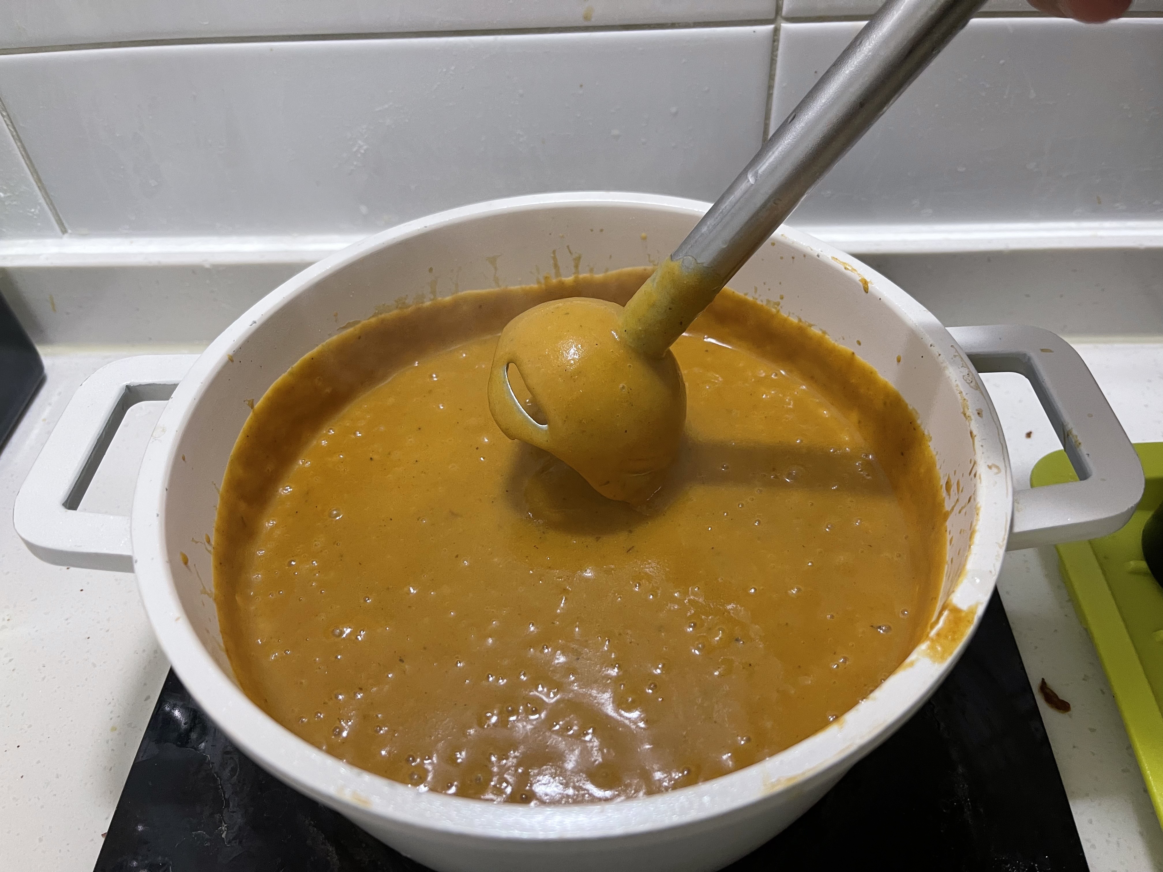 다어느 정도 끓인 카레를 블랜드를 갈아줍니다