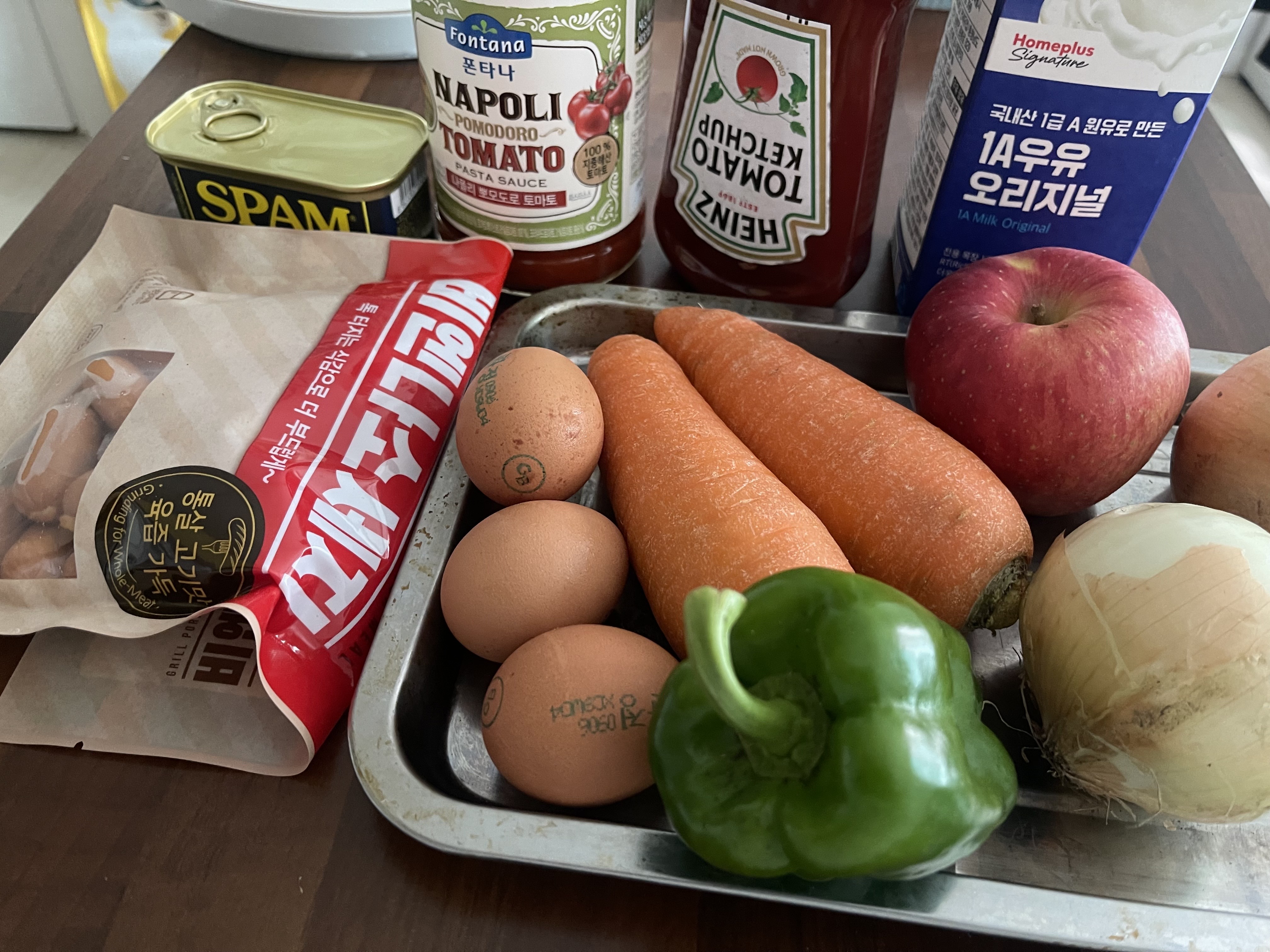 1. 요리 제목(필수): 트레센학원 카페테리아 점심특선 오므라이스 & 나폴리탄 + 당근토핑