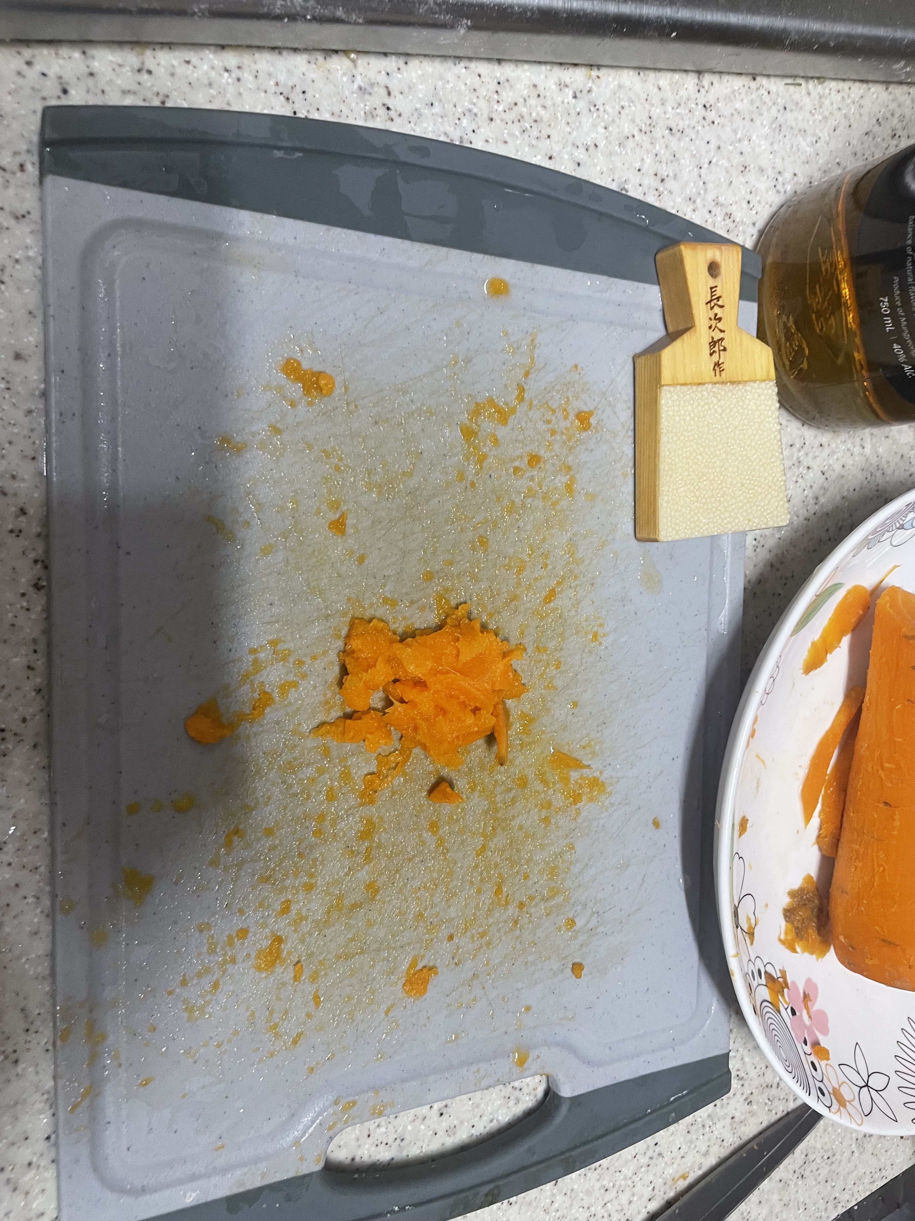 삶은 당근의 일부를 갈아 첨가합니다