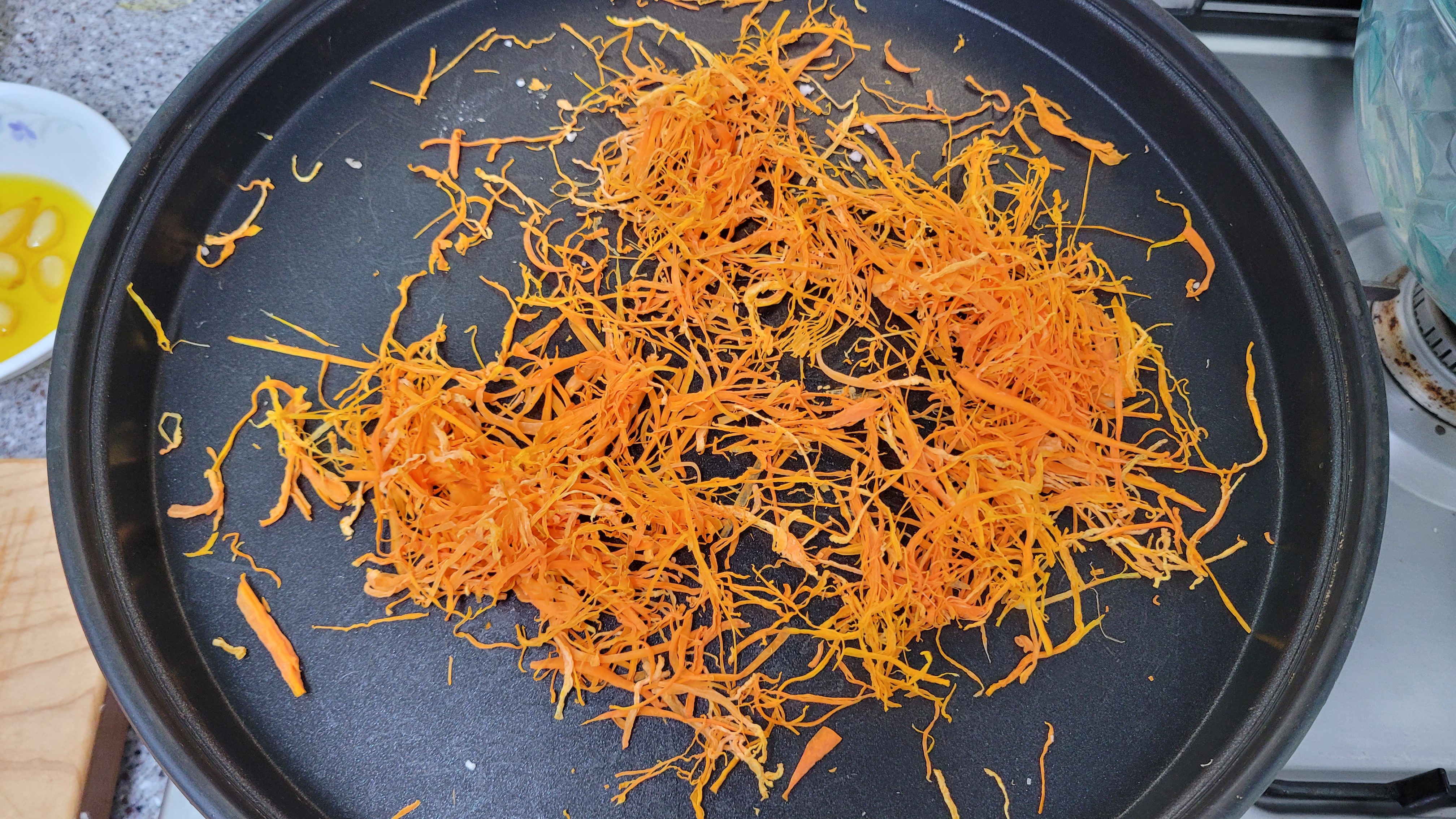 하는 김에 바닥에 당근을 채썰어 말리도록 합시다.
