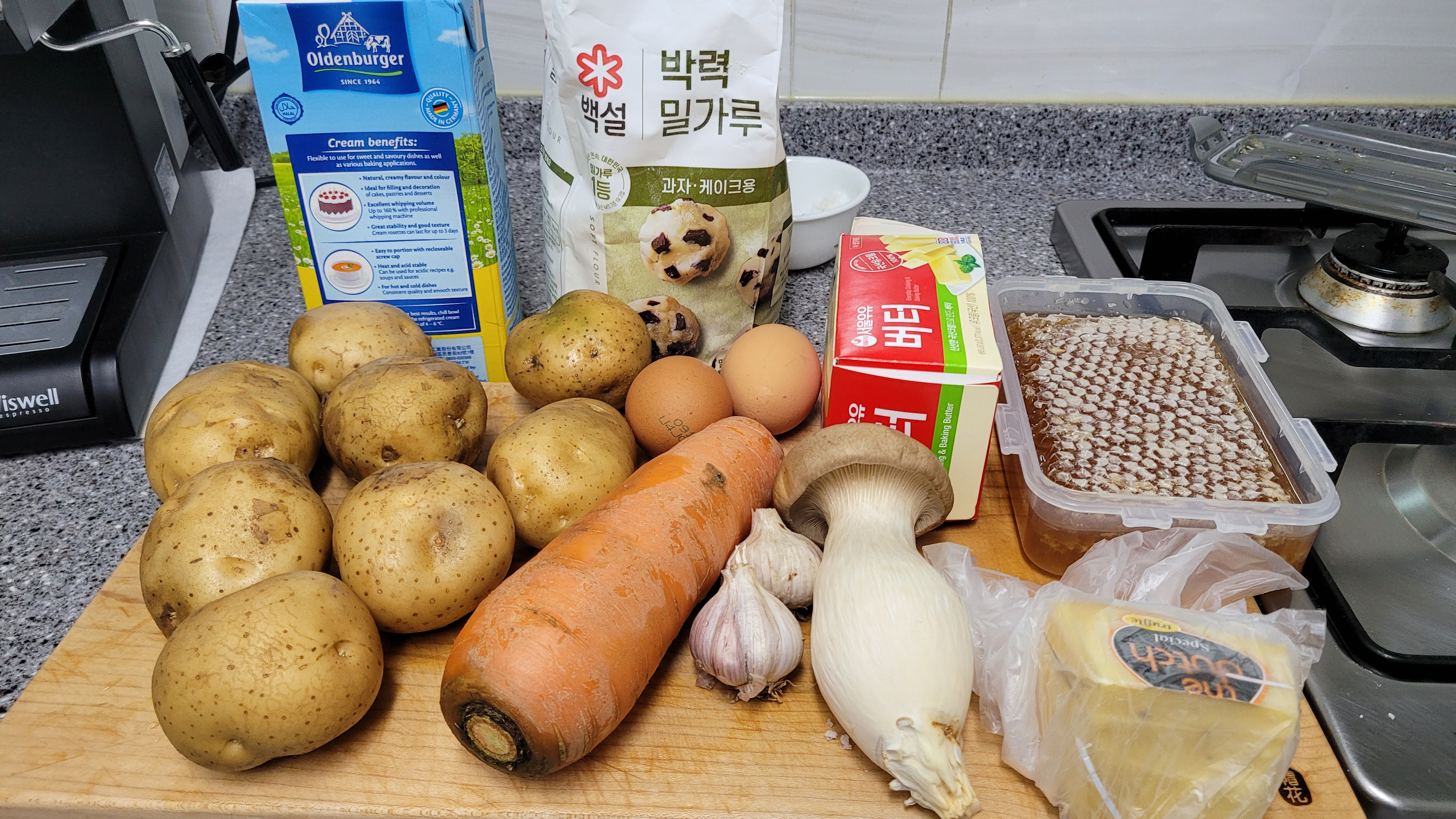 여하튼 감자를 잘 으깨 소금, 계란, 크림을 조금 더 넣어주고