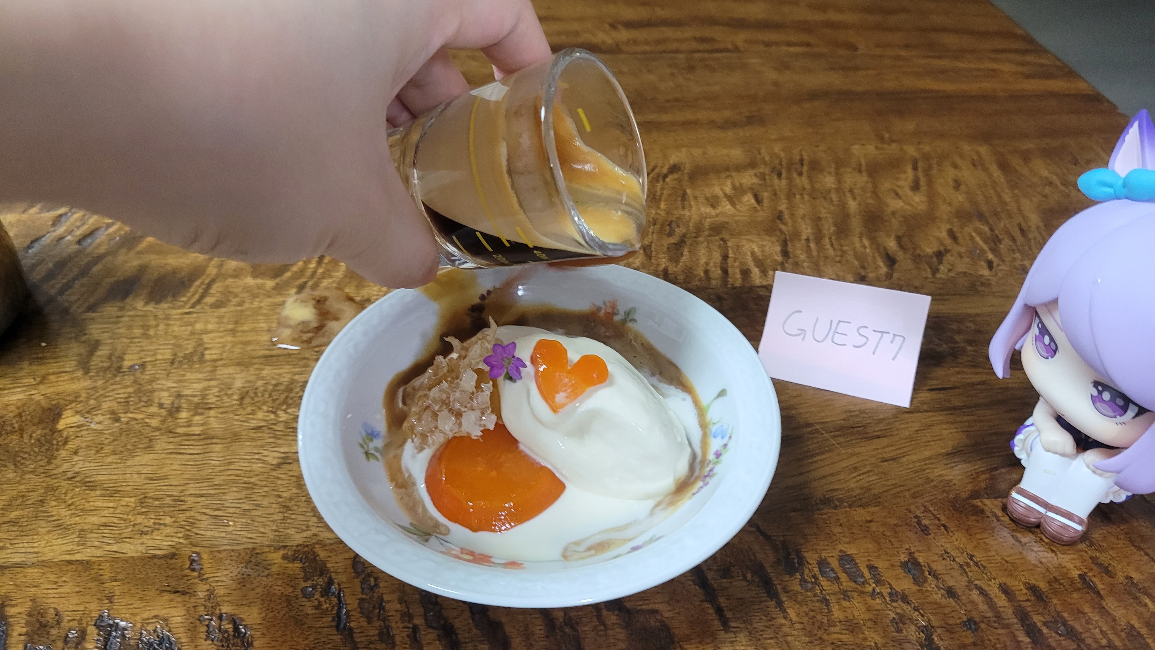 이제 내려놓은 커피와 함께 마무리 디저트를 먹습니다.