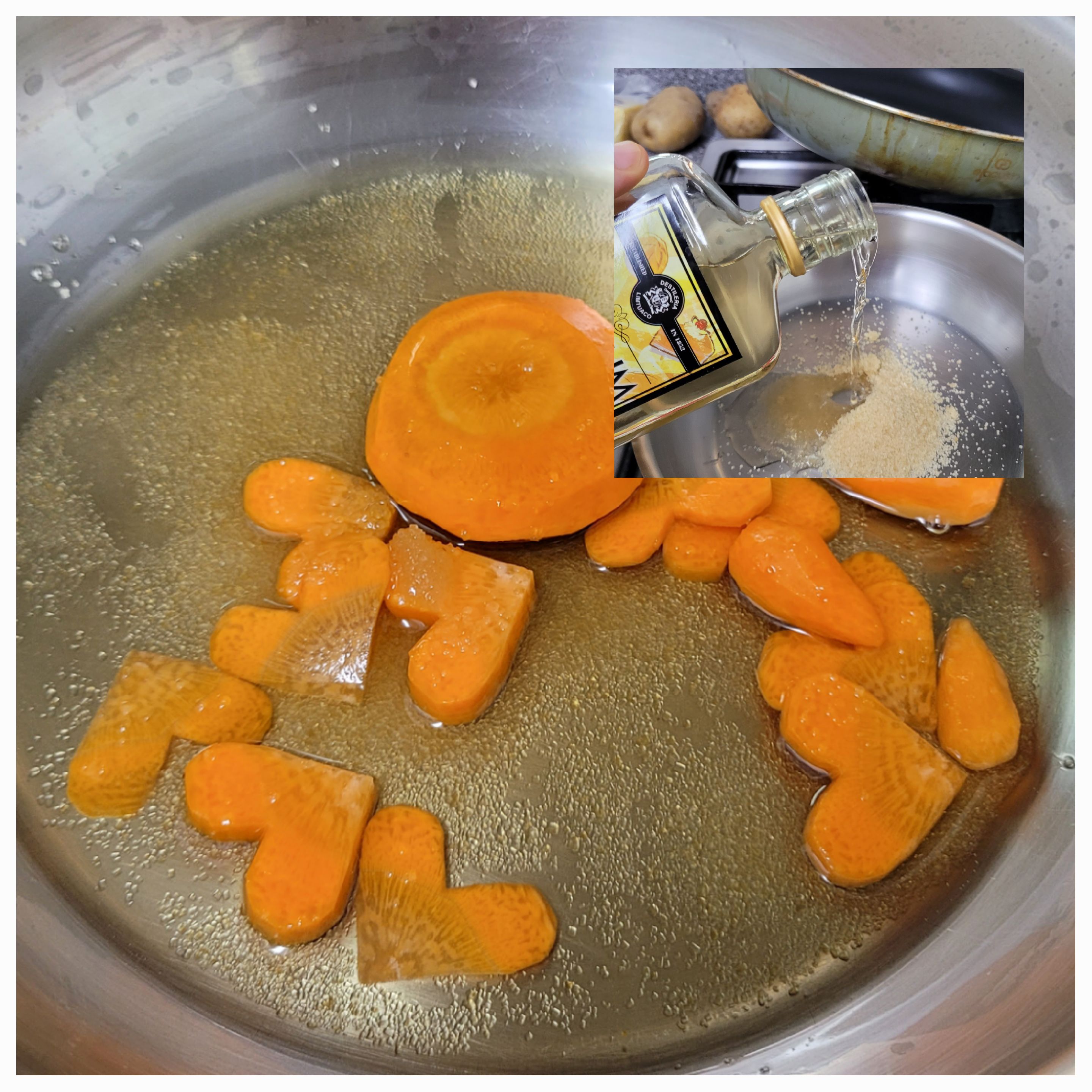 당근을 예쁘게 깎아 설탕과 럼으로 졸이면모양도 예쁠 뿐더러 맛까지 있어집니다.
