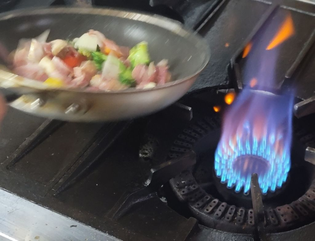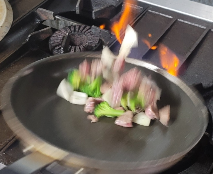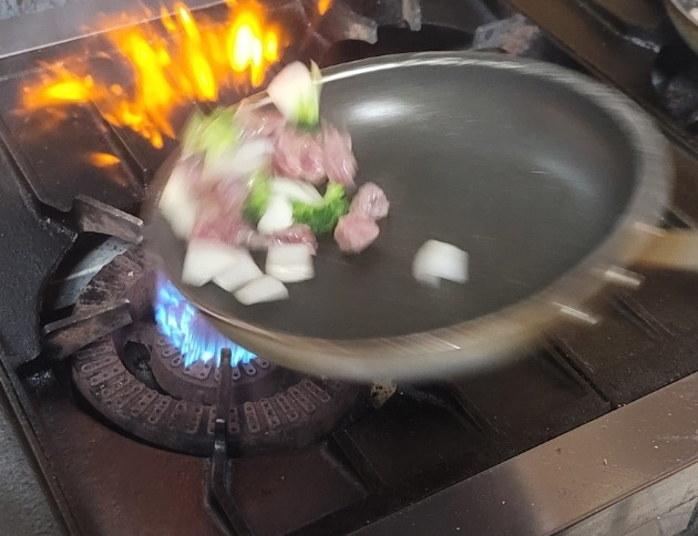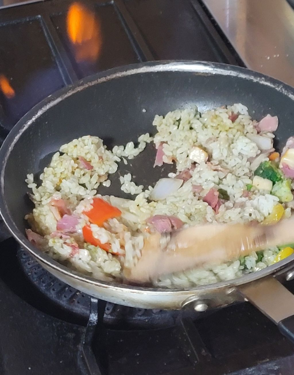 팬을 흔들며 볶아주면 맛있게 익힐 수 있습니다.