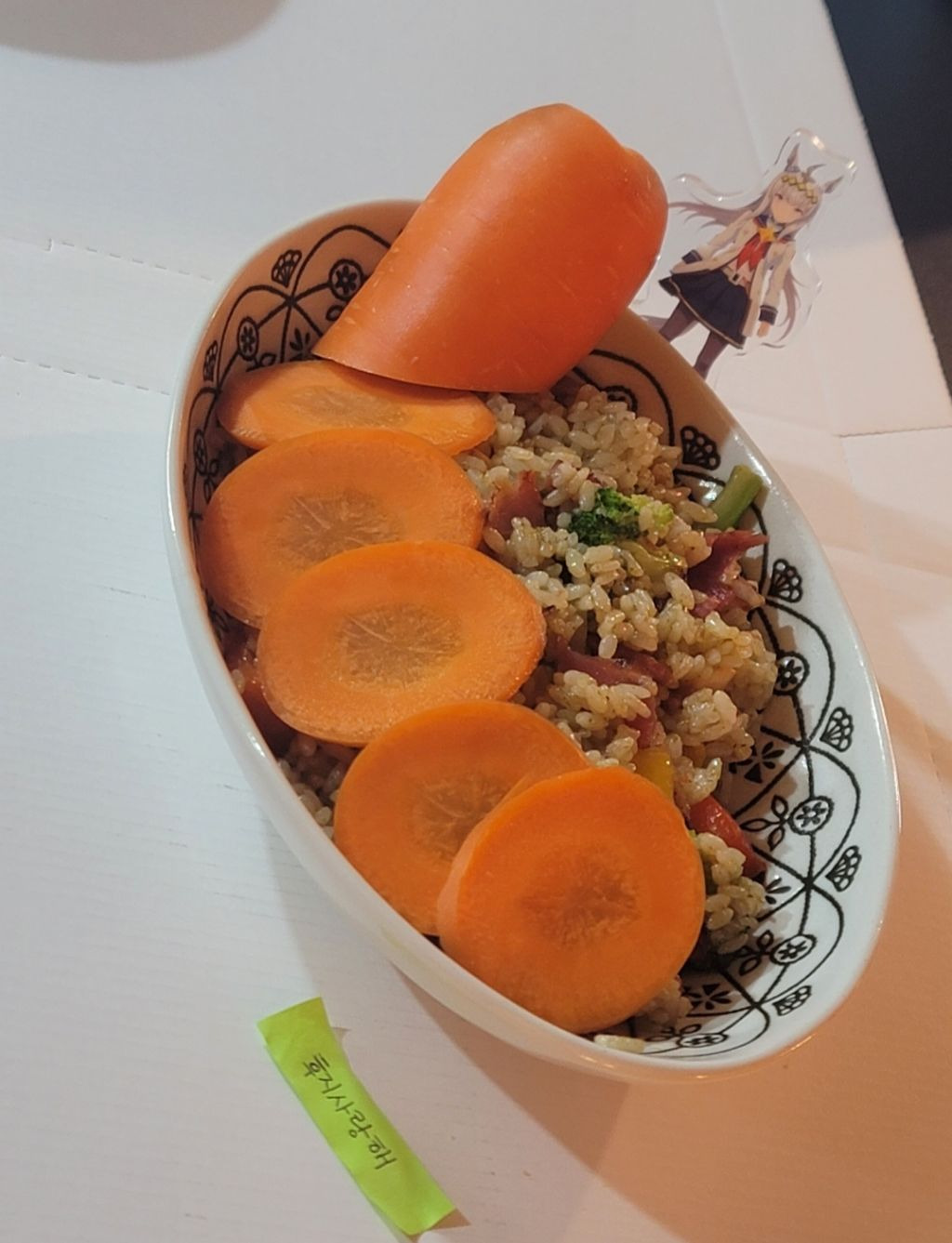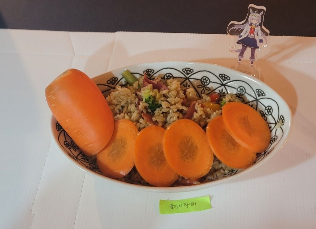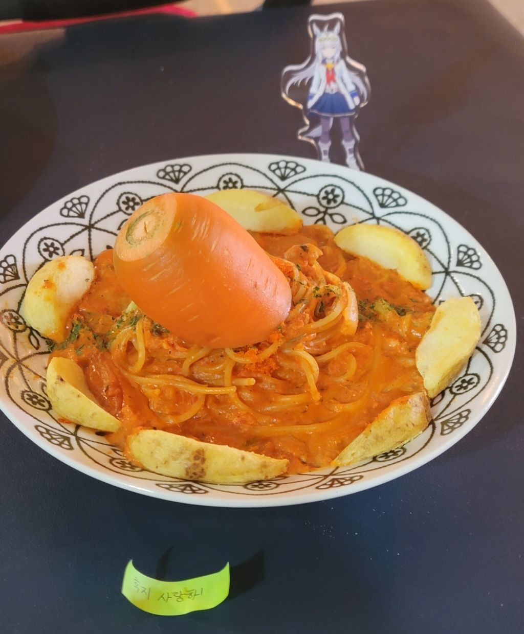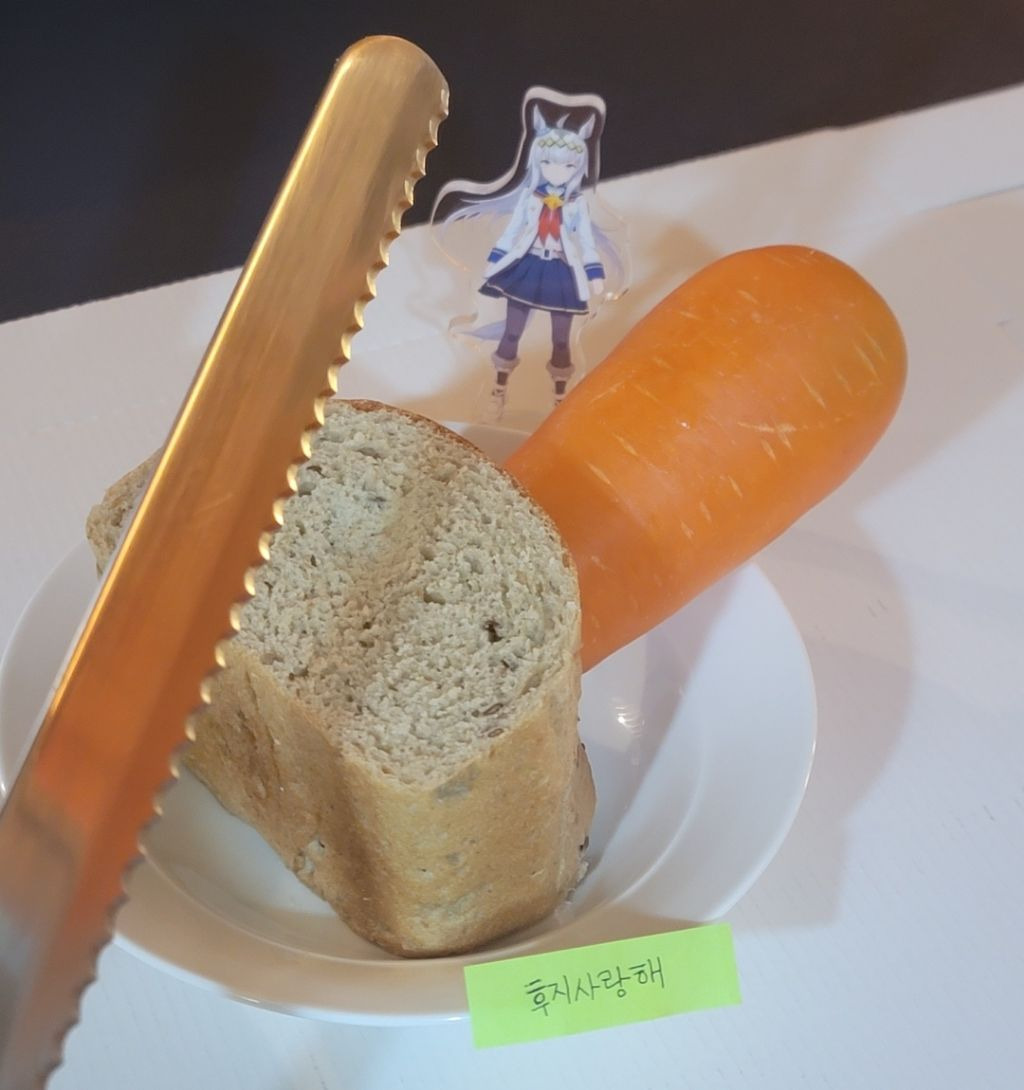 뭔가 아쉬우니 허전한 빵 위에 우마무스메들이 좋아하는 당근까지 올려주면 완성입니다!