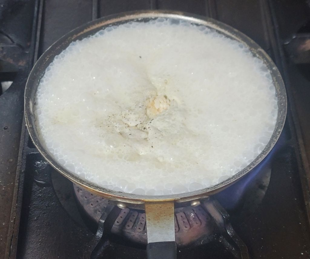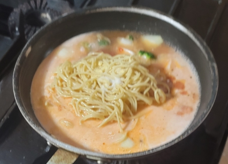 우유 한국자, 잘 삶아준 면을 올린 후 소금으로 간을 해준뒤에 저어가며 끓여주기만 하면 되지만...