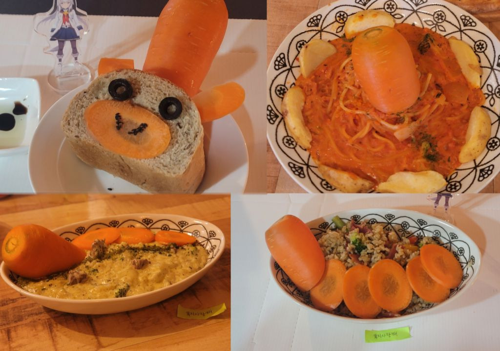 작성자흐르는 강물을 잡을수 없다면 작성시간 24.10.02 당근이 무지막지해서 컨셉이 확실한거 같아요 ㅎ 너무 귀여운 요리들..!