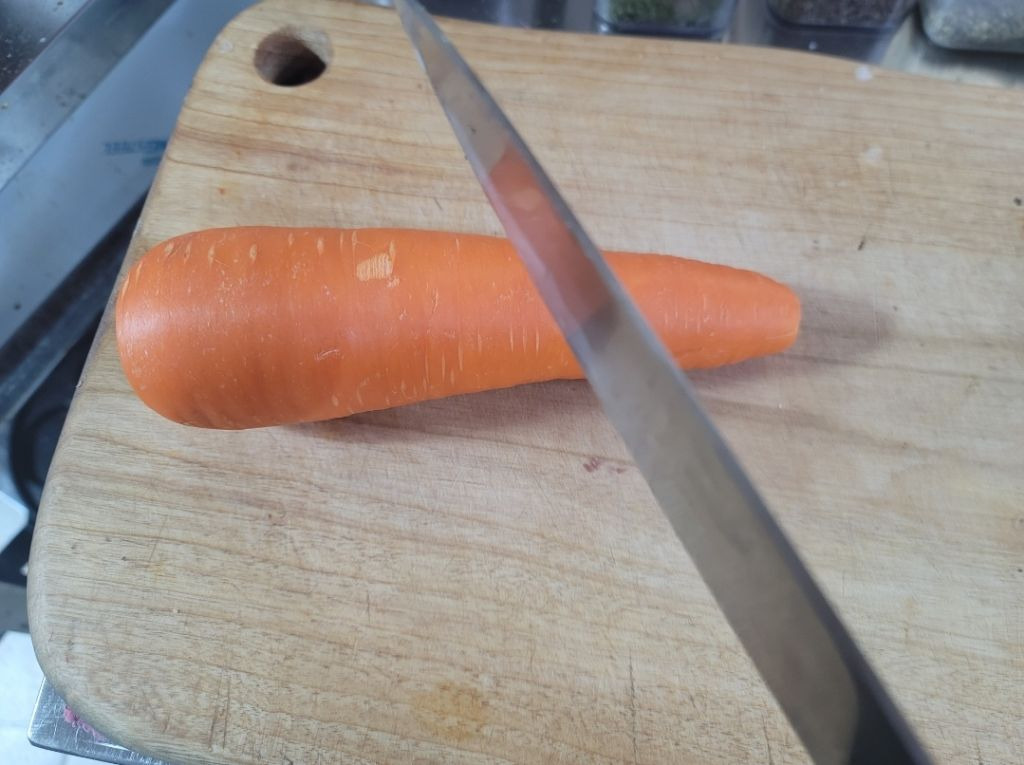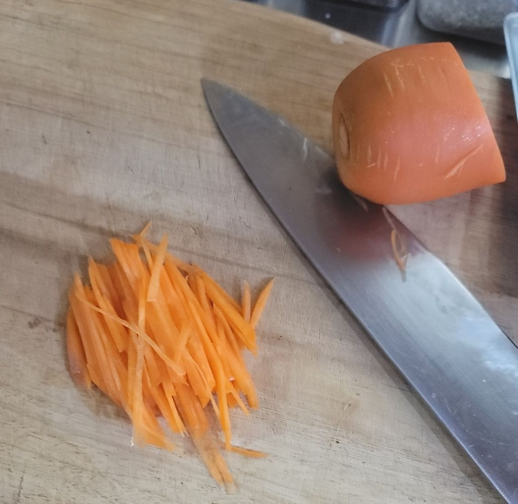 바질 리조또에는 이미 녹색 풀(바질)이 메인으로 많이 들어가서, 당근은 새걸 사용하기 보단 이전 요리에 쓰고 남은 부분만 사용해주었어요.