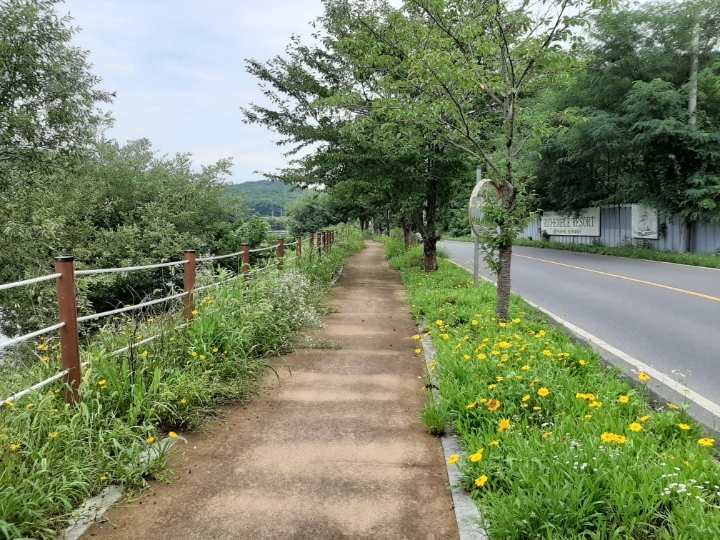 영지저수지둘레길이 끝나는 지점에서 영지길을 따라 성호리조트주차장으로 회귀.