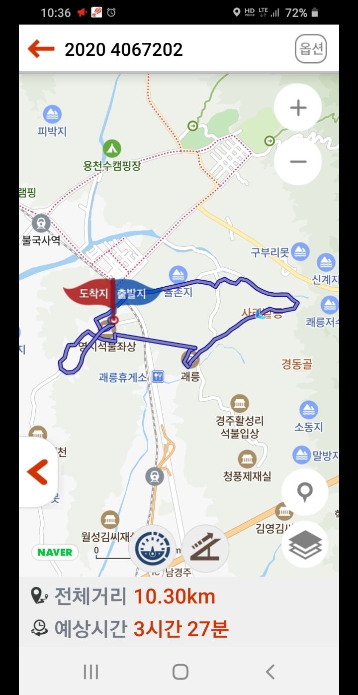 영지로~ 성호리조트~서라벌요입구~영지설화공원(공사중)~영지저수지둘레길~성호리조트주차장