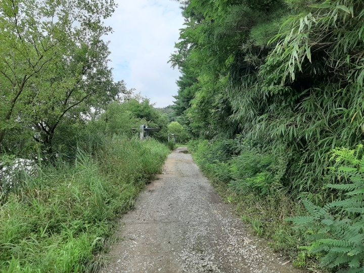영지입구에서 영지길을 따라 영지저수지로 진행한다.