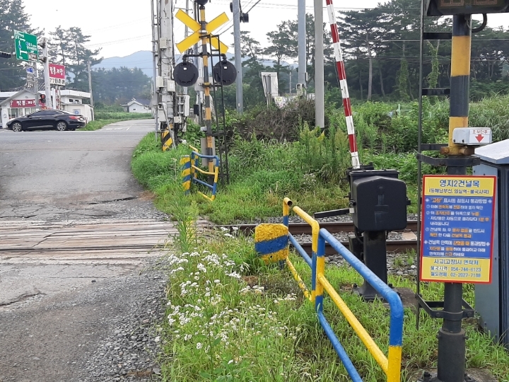 철길을 건너지 못하게 철조망으로 막아놓았다.