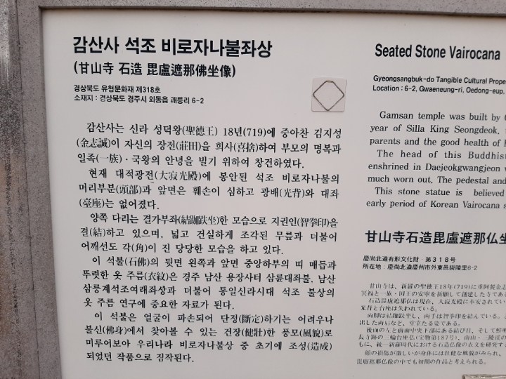 감산사 대적광전-석조비로자나불좌상(경상북도 유형문화재 제318호)