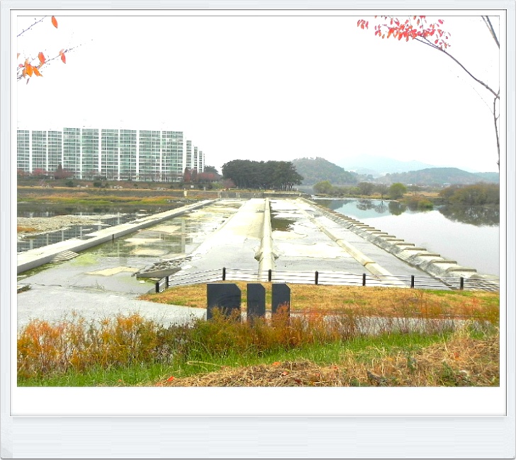 삼문송림에서 보를 건너면 용두연유원지주차장입니다.