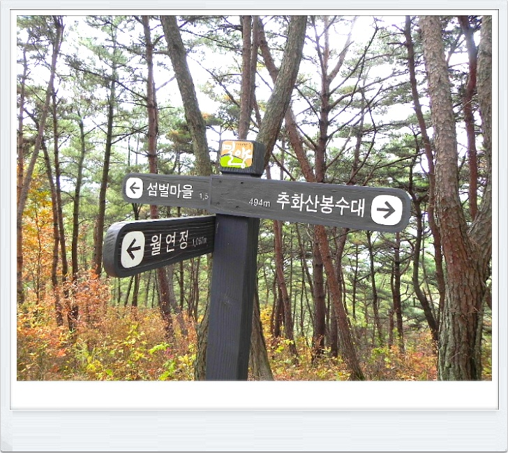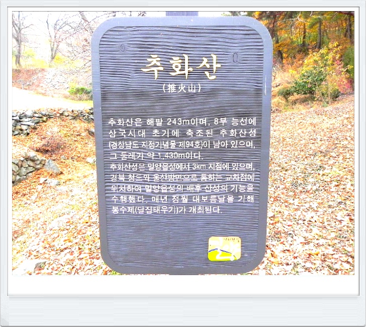 밀양아리랑길 3코스는 추화산 봉수대까지 올라가지 않고 삼거리에서 섬벌마을로 내려갑니다.
