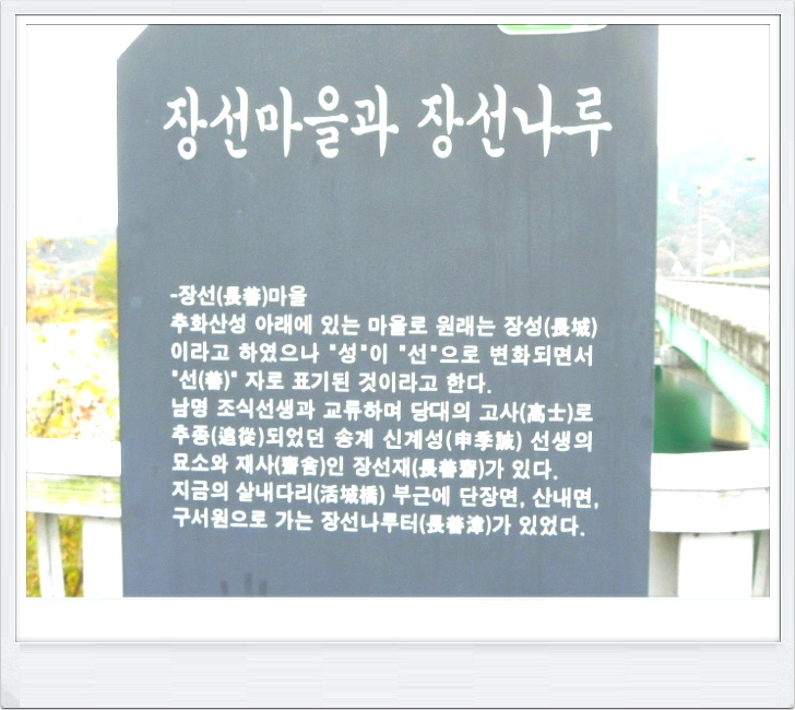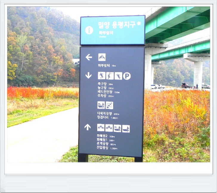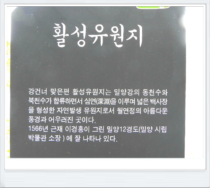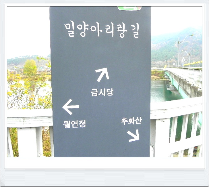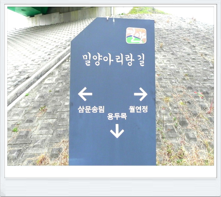 <용두연유원지 입구에 있는 밀양아리랑길 안내글>