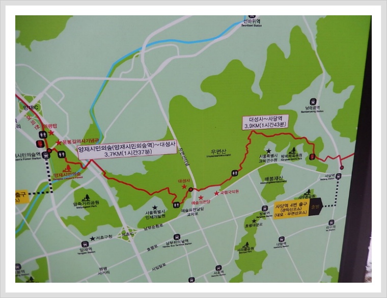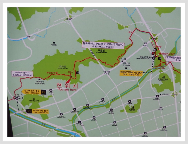 오늘 걷는 구간은 <수서역 ~ 불국사 ~ 양재시민의숲역>까지 서울둘레길 4-1구간 10.3km이다.