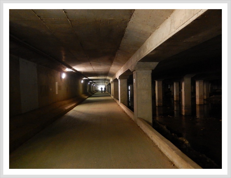 여의천 산책로 굴다리를 지나간다.