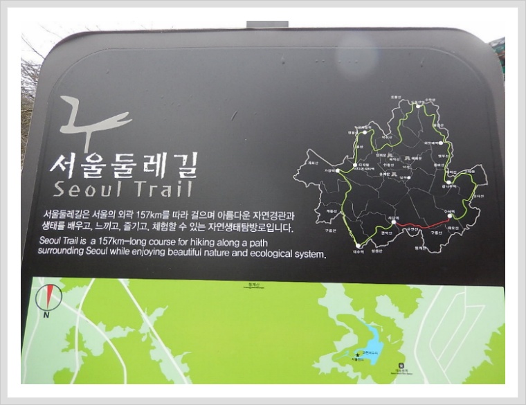 서울둘레길은 서울의 외곽 157km를 걷는 자연생태탐방로라고 소개하고 있다.